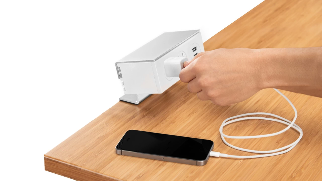 Outlets that move with you mean you can raise and lower your desk with assurance that your cords won’t get snagged or pull things off your workstation, and the 10′ long cord gives you plenty of room to adjust. With a 5V/2.1A charging capability between the four ports, you’ll have access to almost three times more than competitors’ hubs, letting you charge your phone and devices even quicker than ever before. Enjoy more power, right where it’s needed, with this helpful workstation accessory.