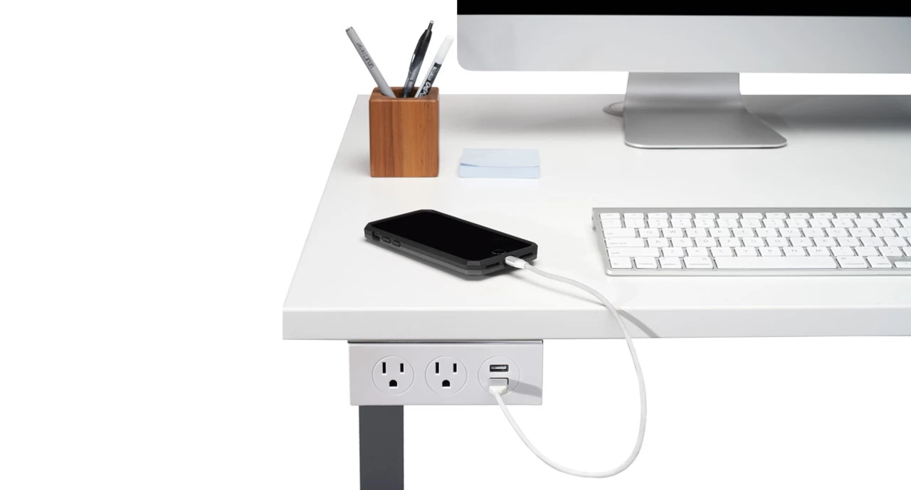 - Two power outlets and two USB outlets allow you to power a variety of devices at your workstation