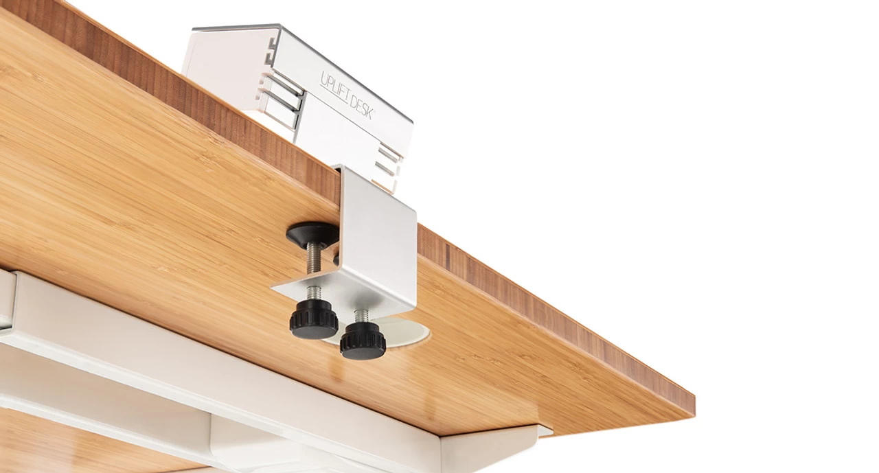 With easy installation and a design that smartly suits a wide range of desktop thicknesses, you can be sure you’re powered and good to go. All you have to do to clamp to your desk is twist the bottom knobs to tighten and loosen the clamp, and fasten to any desk edge 0.74″ to 1.75″ thick. This accommodates a large majority of desktops and all desktop thicknesses from UPLIFT Desk. Worried about scratching your top? Never fear, the Clamp-On Power even comes with an anti-slip neoprene pad that cushions and protects the surface of your desk from scratches.