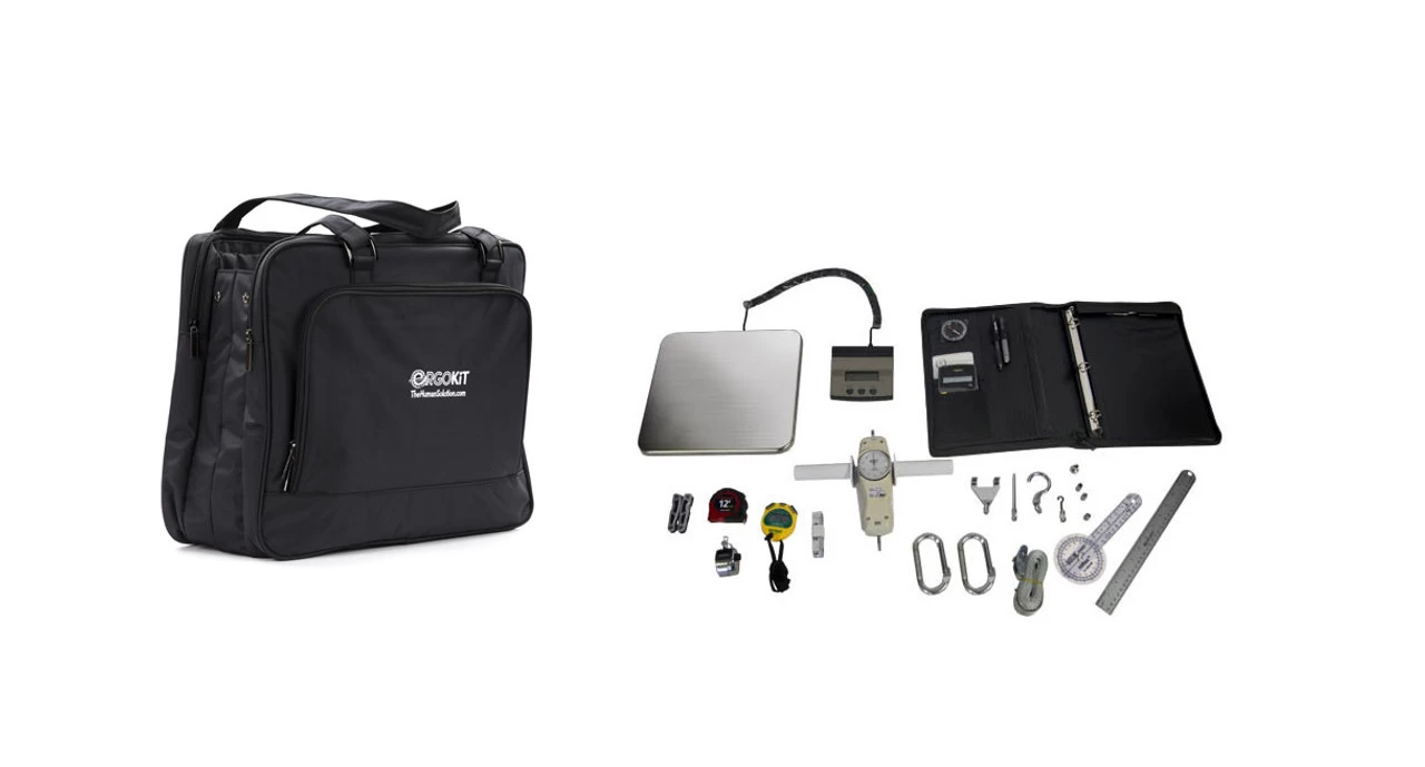 A wide array of accurate testing tools are included in a heavy-duty carrying bag for a variety of force, posture, and frequency measurement devices. Constructed to meet the most common needs of the professional ergonomist, the ErgoKit Lite features many of the same tools found in the complete ErgoKit, making it an ideal solution for ergonomists who only need tools to perfom force and anthropometric measurements.