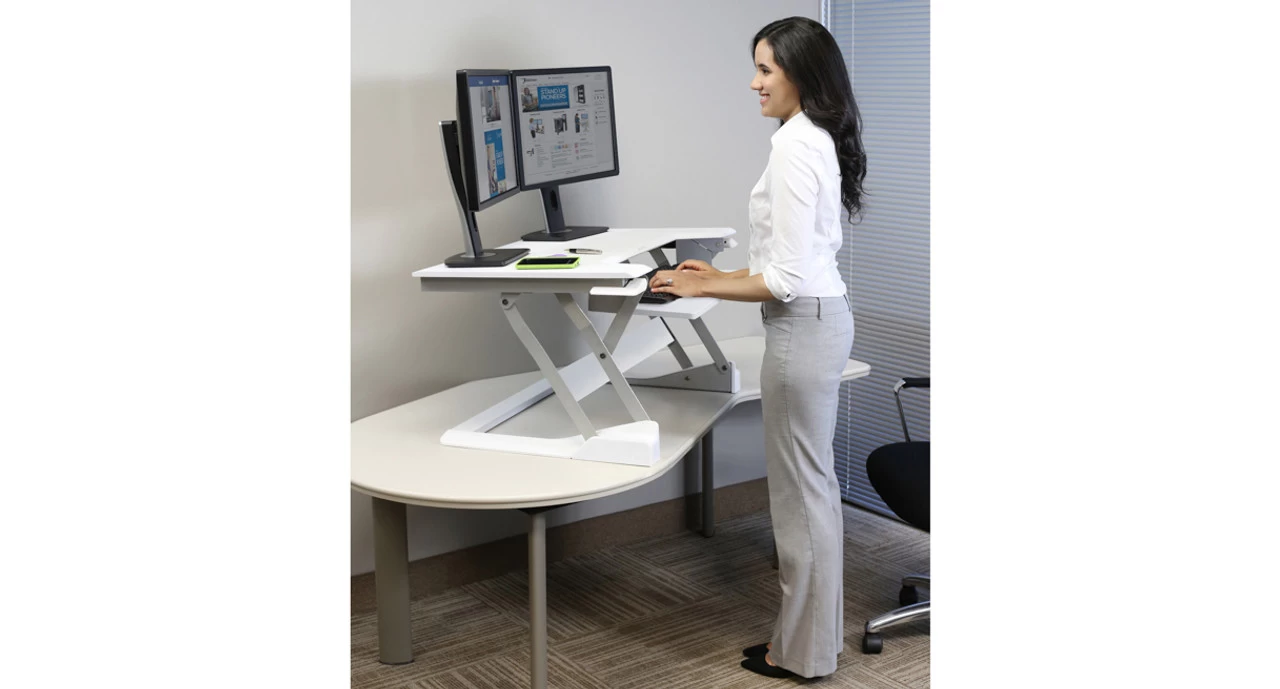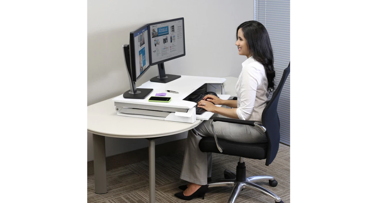 Ready to use straight out of the box at your current desk, the Ergotron WorkFit T Sit-Stand Desktop Workstation is the ideal all-in-one system to keep you working in better postures for your body. To transform your desk, simply set on top, raise and lower to your height preferences for an easy way to upgrade your office for better ergonomics with one major desktop annexation. This model is made to fit in smaller, narrower spaces around the office, giving you ergonomic options even when space is lacking.