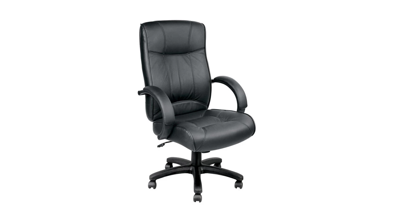 The Eurotech Odyssey Executive High-Back Leather Chair LE9406 provides quality seating at an affordable price. The high backrest features durable black leather upholstery with a stitching pattern that is mimicked on the cushion for a cohesive design. The C-shaped, loop armrests feature plush padding with matching leather upholstery.