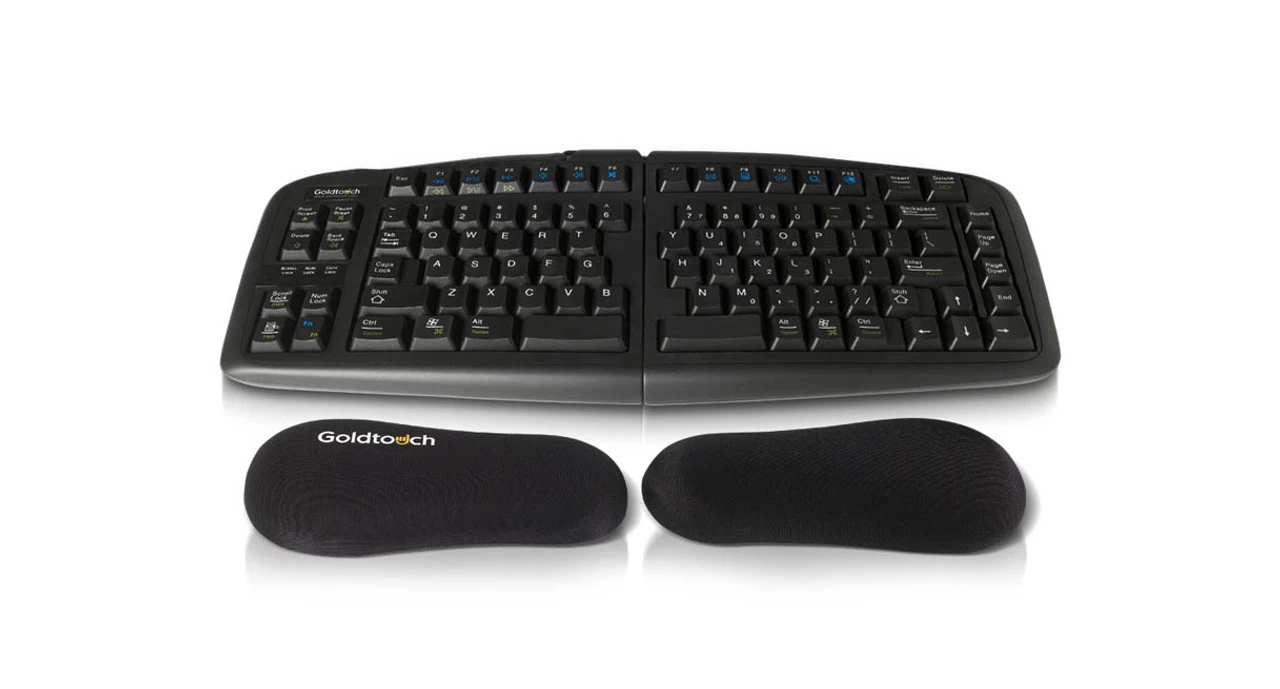 The soft, rounded Gel Filled Palm Support Set by Goldtouch is there when and where you need it. Available as a two-part set, just place at the base of the keyboard, leaving a slight gap in the middle.