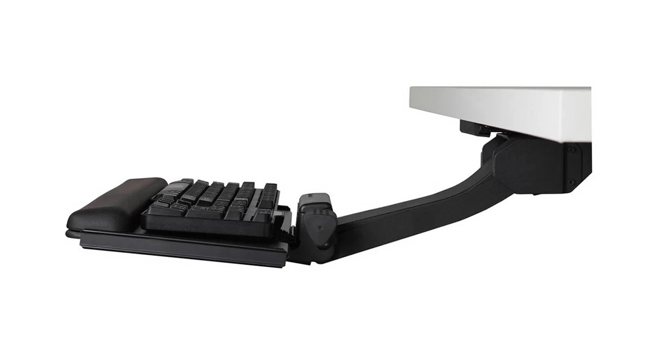 A major way to avoid stress injuries is to task on a keyboard tray that allows for negative tilt keying, typically between 0 and -15°. This assists your wrists while you type and mouse, supporting them and leading you to a more comfortable working experience.