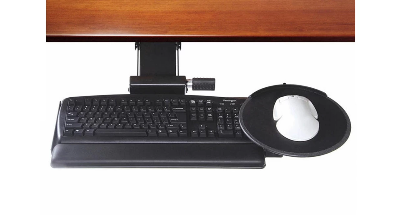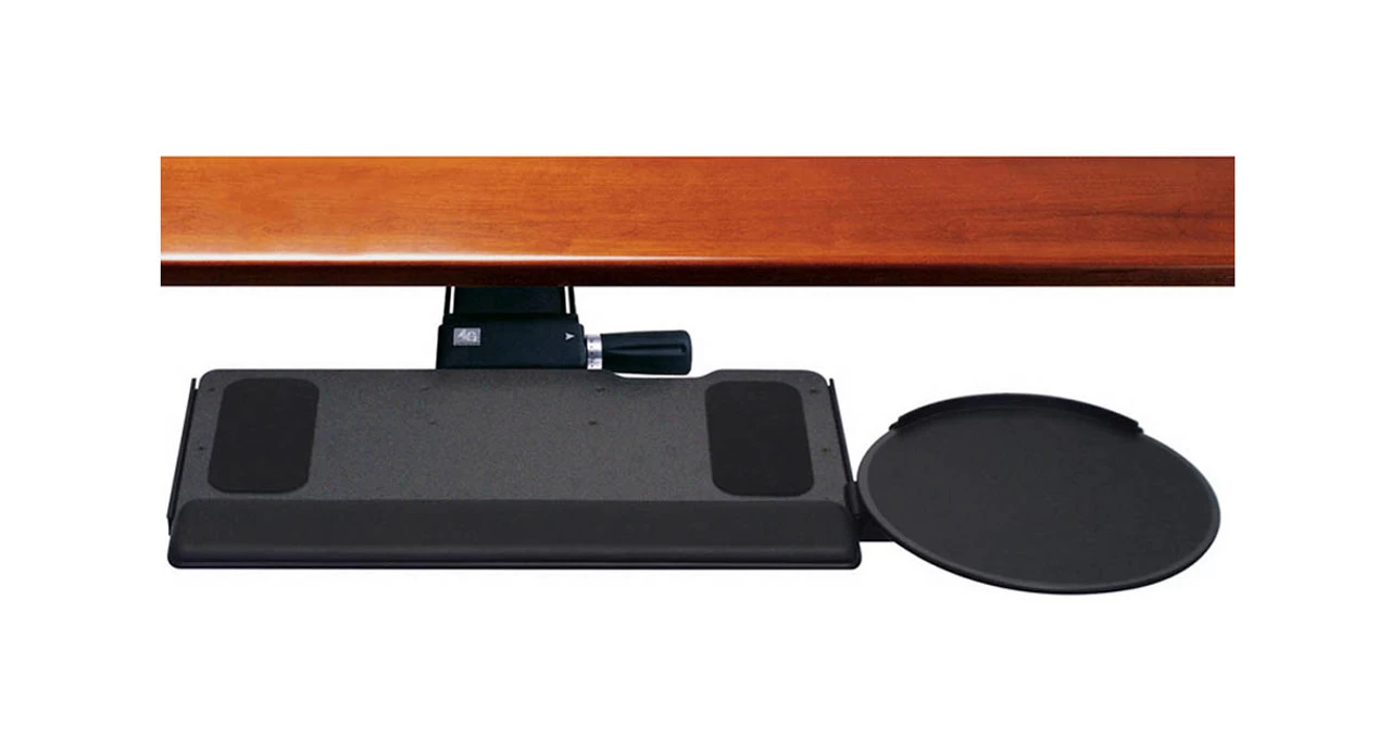 Designed to fit on most desks and hold most keyboards, you’ll have the unique ability to tilt the tray to that working sweet spot that your hands, wrists, and arms appreciate, leading you to better work.