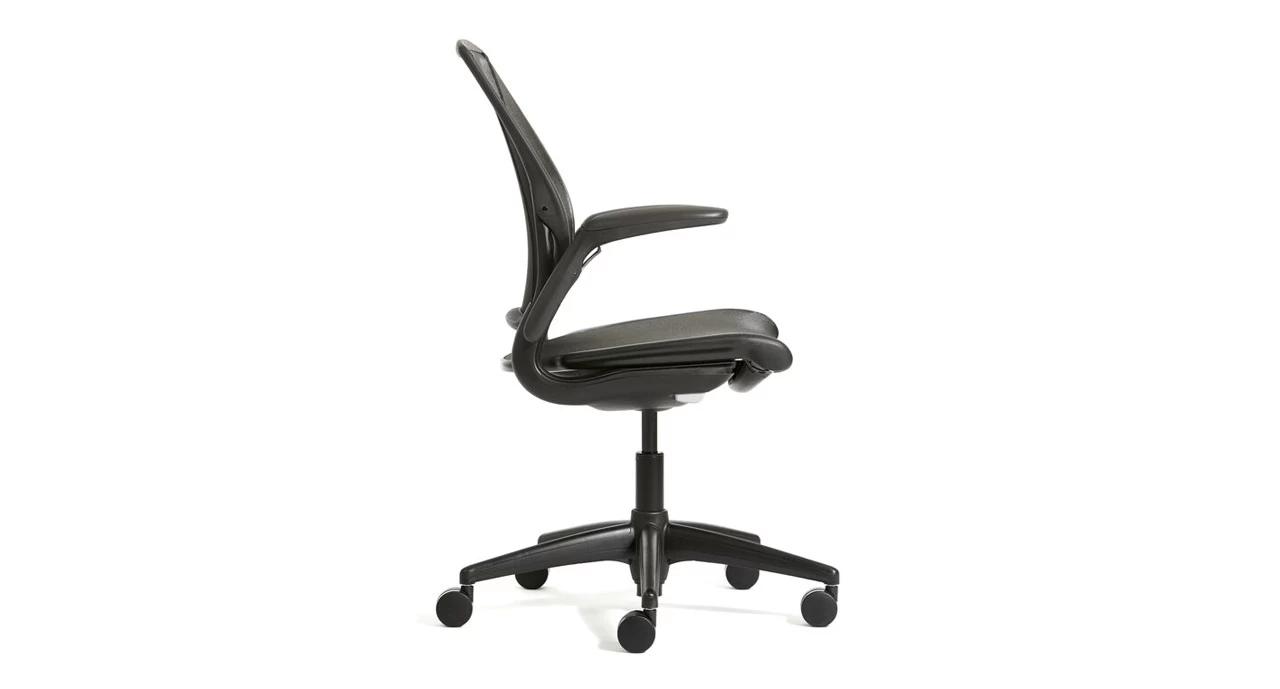 The Humanscale World One features armrests that attach to the back of the chair in order to easily move with the user, providing an ideal resting spot at any angle.