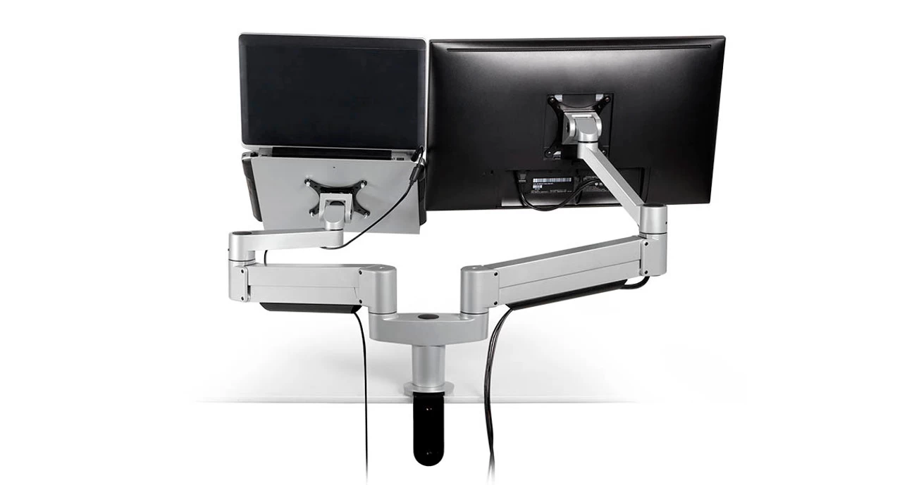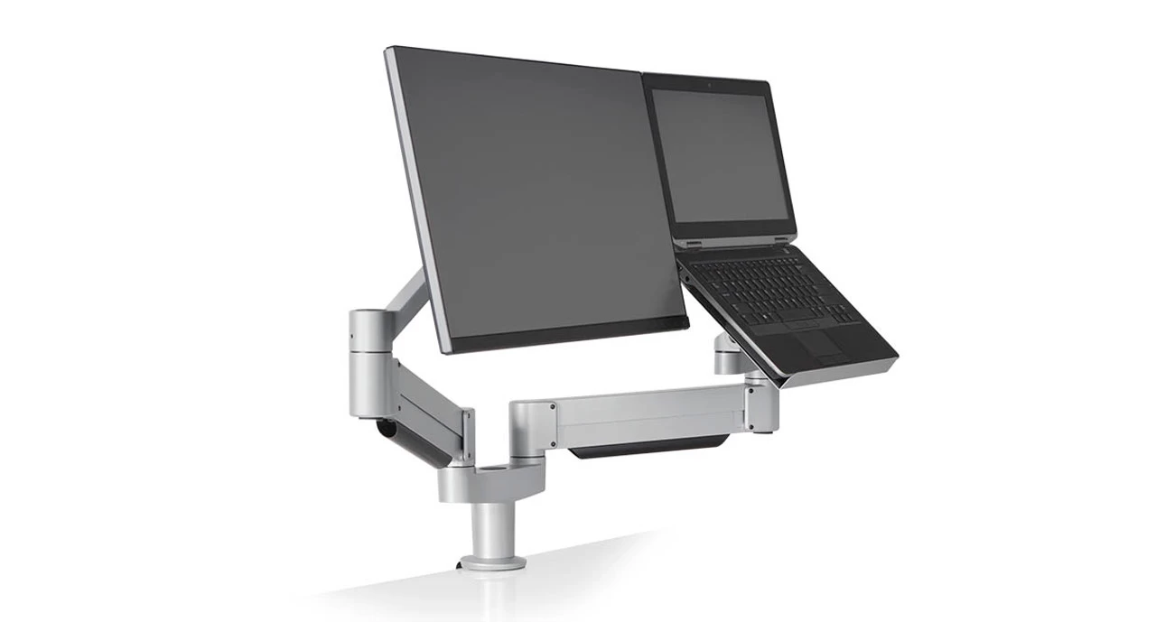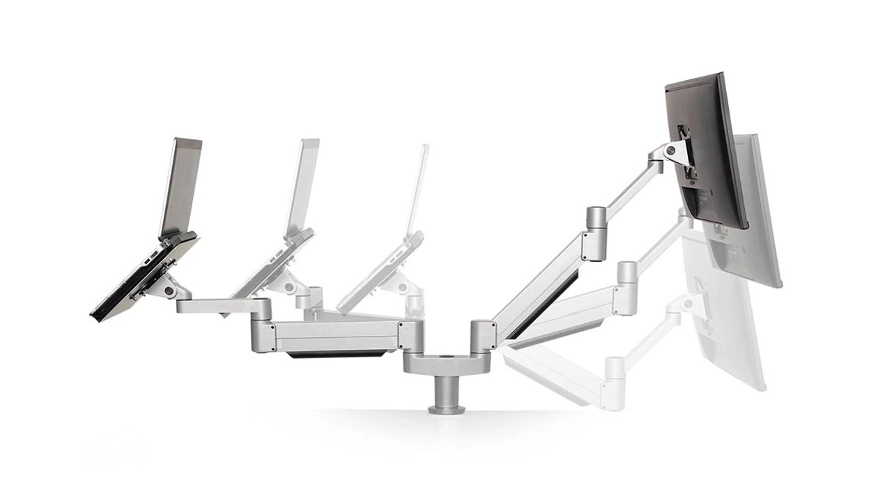 - 2 independent, articulating arms – 1 for your monitor and 1 for your laptop