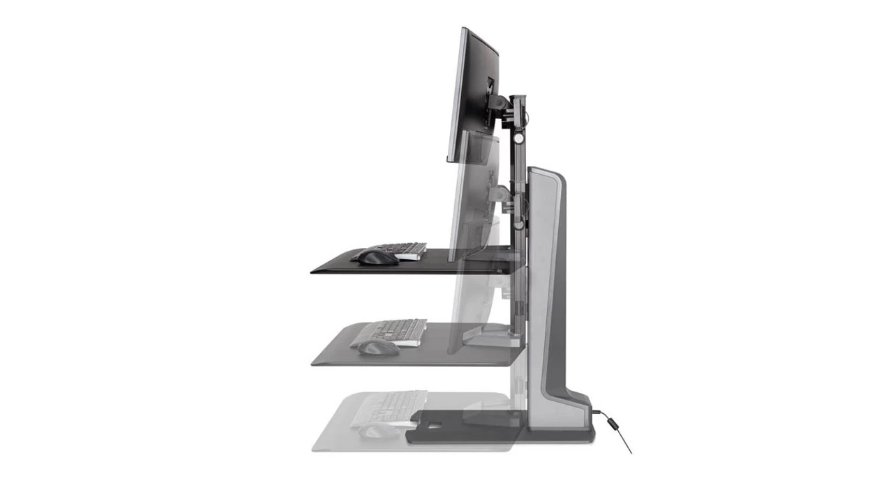 - Quickly retrofits a fixed-height desk into a sit-stand workstation