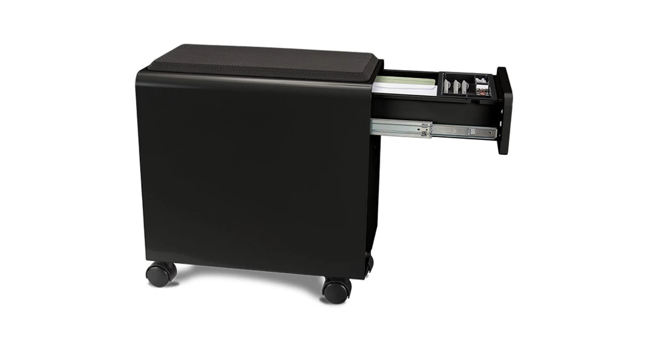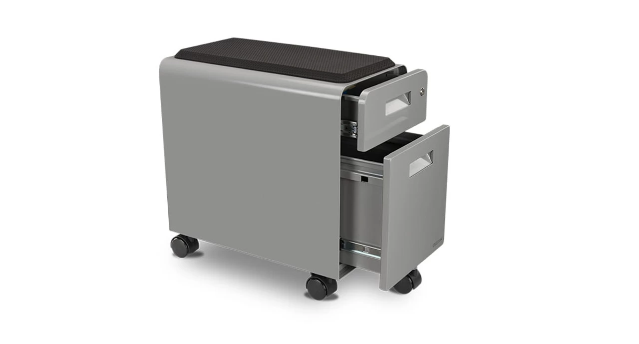 Get ready to work with the perfect amount of storage space with this portable, locking, and comfortable file cabinet. You read that right. This file cabinet doubles as a side seat when you install the included anti-fatigue pad, giving you more storage and seating in one. This is perfect if your boss is fond of impromptu meetings around your desk or if you like to put your feet up while you brainstorm (hint: it’s also a footrest).