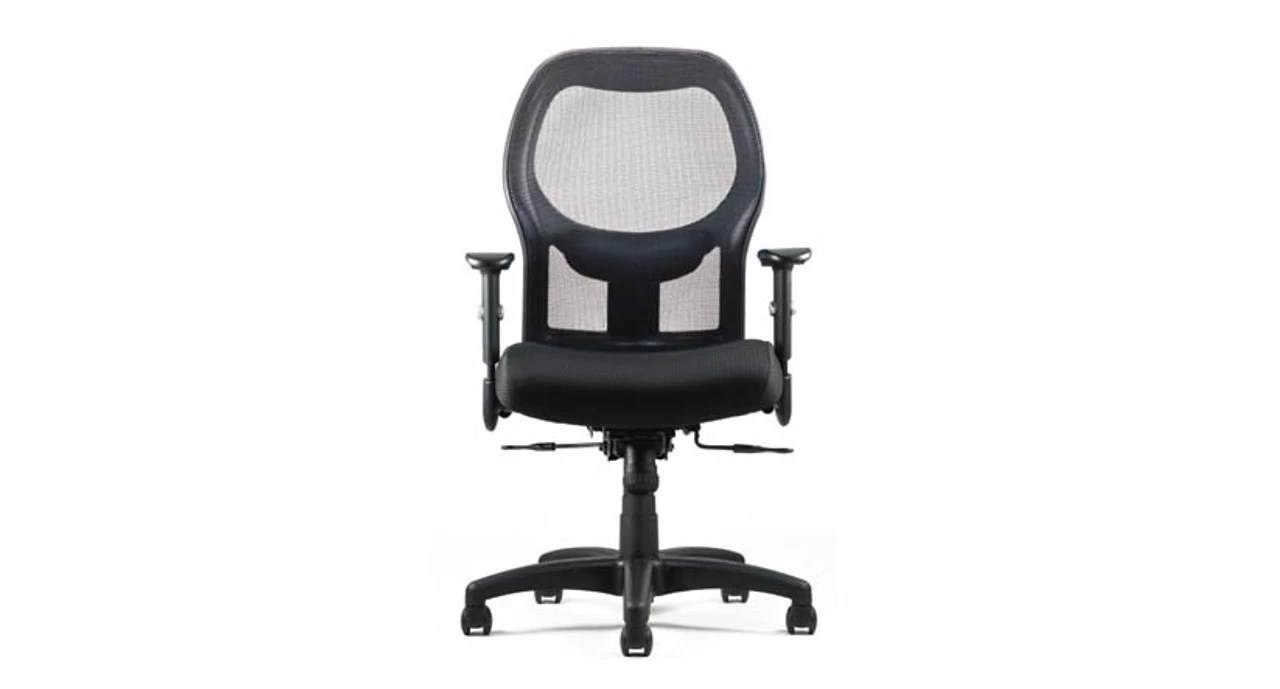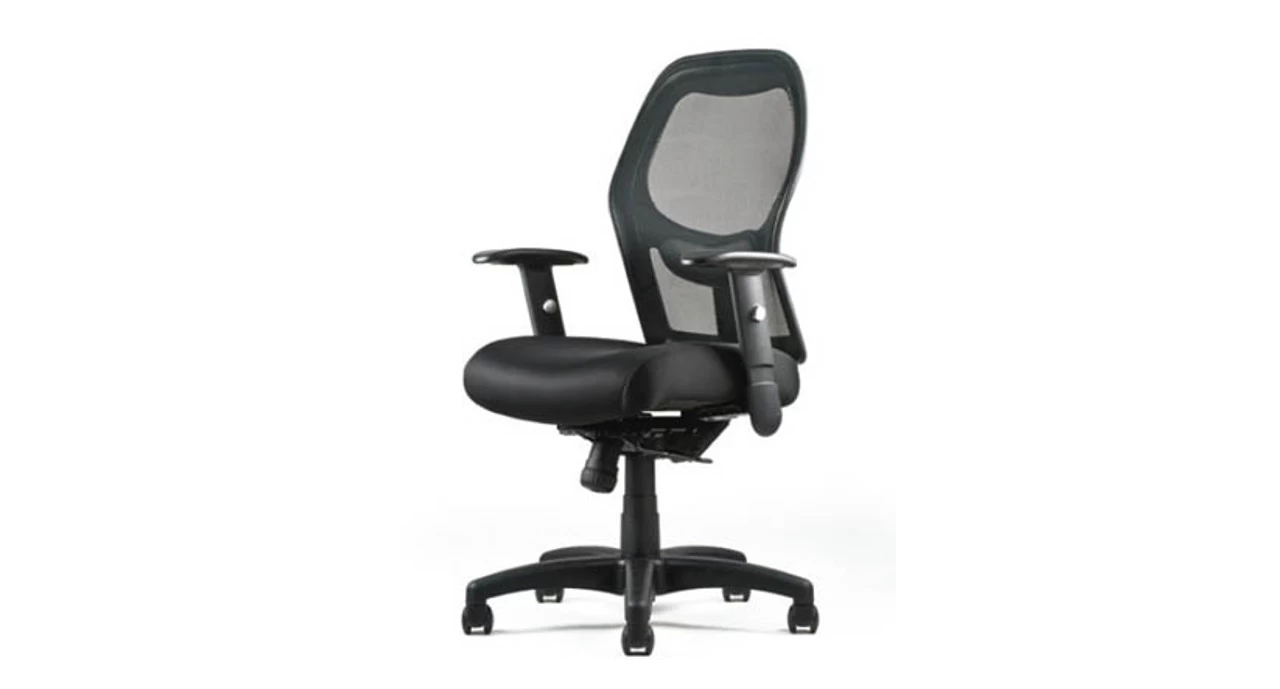 - Breathable mesh back features adjustable lumbar height and can be upholstered in fabric