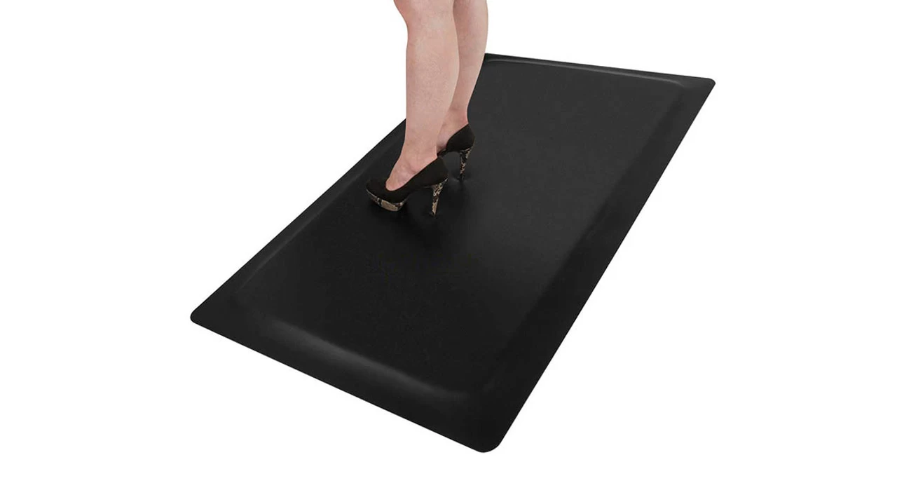 Enjoy the benefits of sitting and standing at an adjustable height workstation that supports you in all of the right places; this includes the legs and feet, which sometimes need a little extra cushioning.