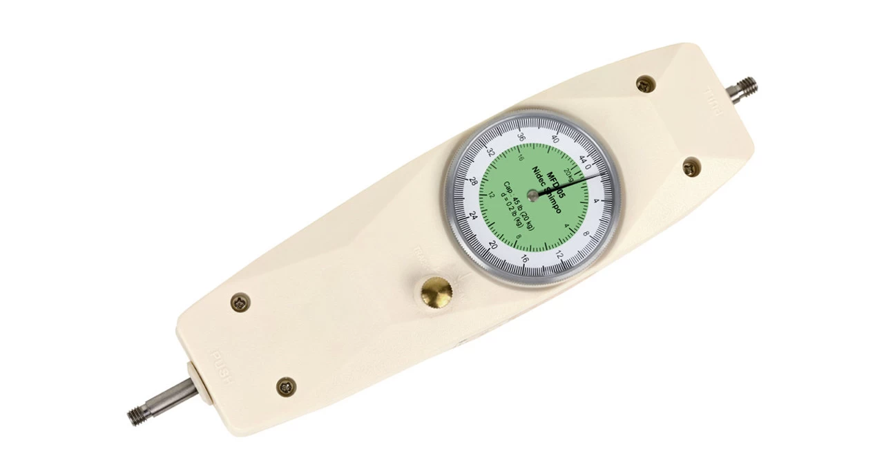 The Shimpo MFD-02 Dual Scale Mechanical Force Gauge is easy to use, economical, and offers users dual kg/lb scales. The unit’s peak force operation mode features an easy push-button reset, which is especially helpful for repetitive testing, such as in an assembly line or in quality control situations. When you need a force gauge that delivers accurate measurements, look no further than Shimpo.