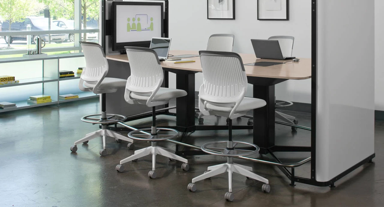 Fan of the Cobi Chair, but want a little extra height? Steelcase brings the Cobi Drafting Stool, perfect for aiding in invigorating movement while collaborating and working at taller heights.