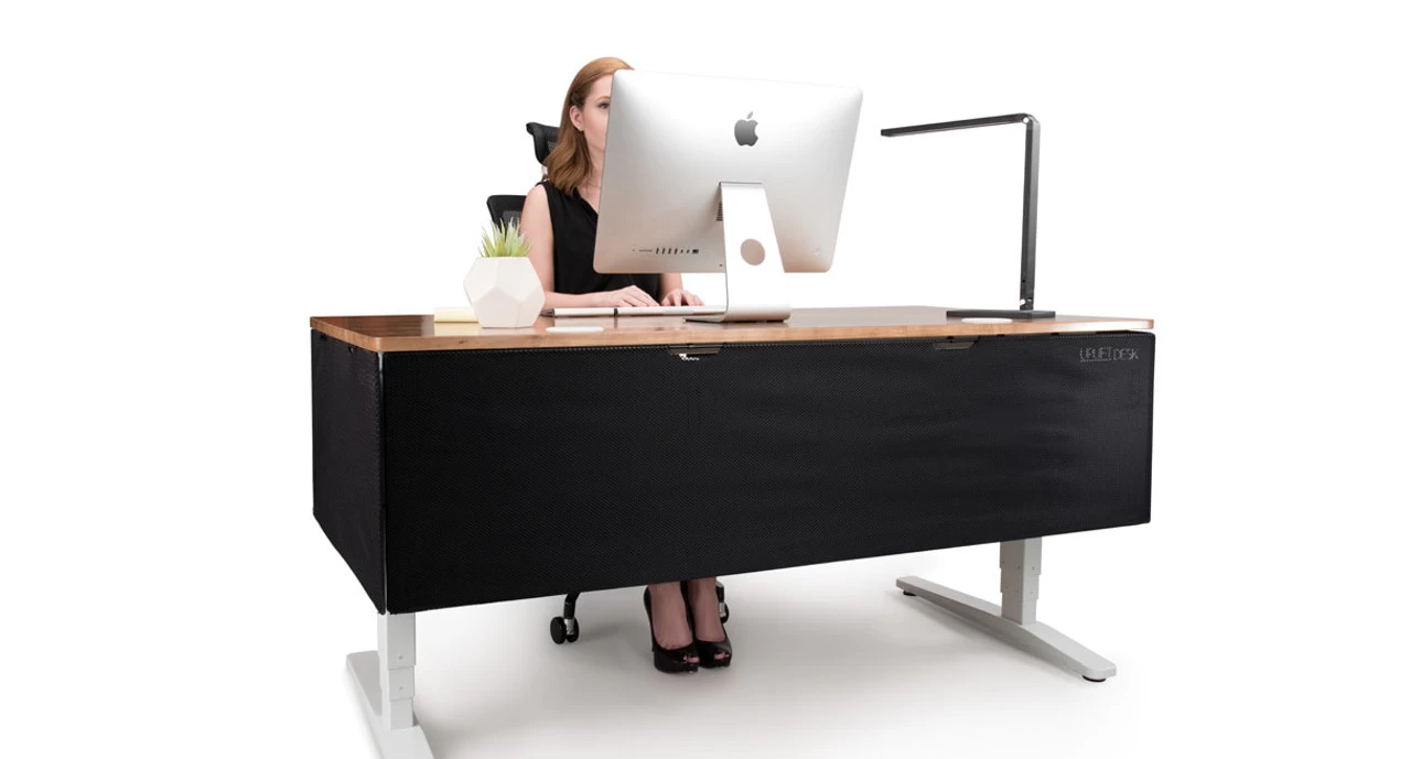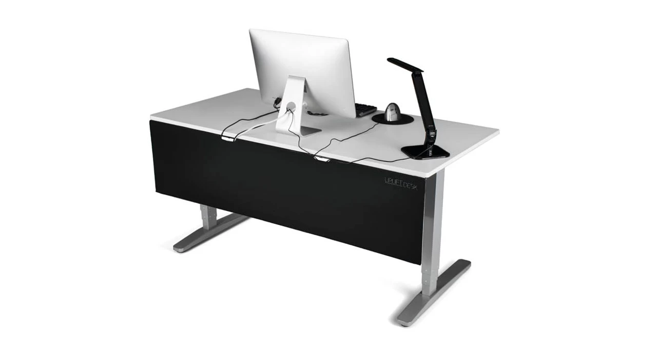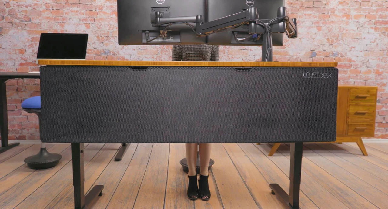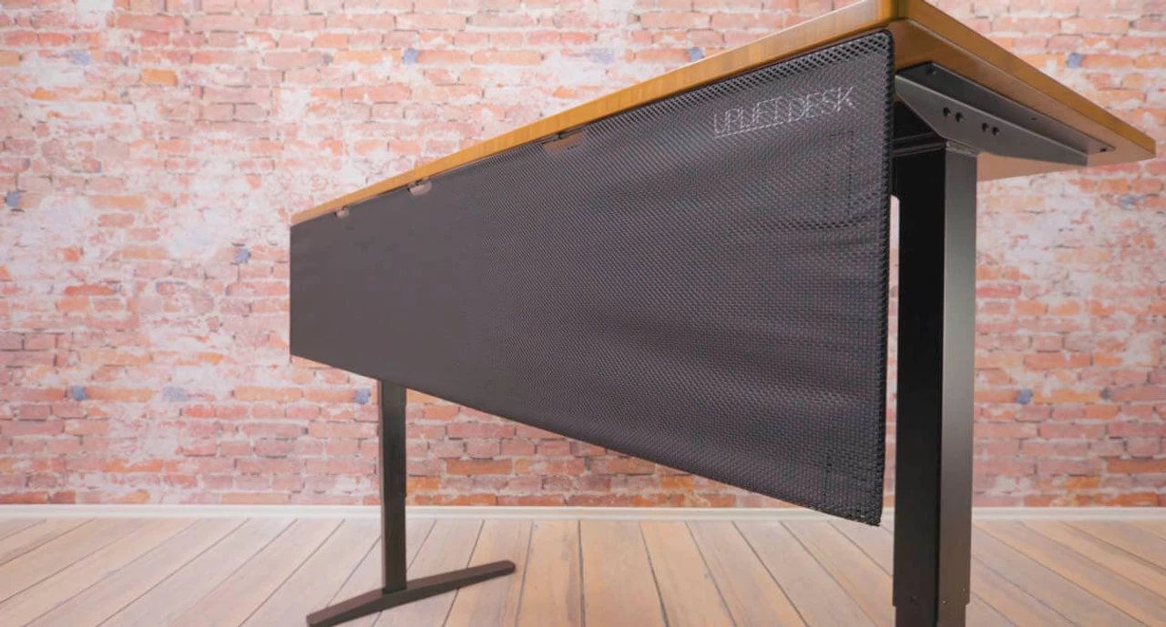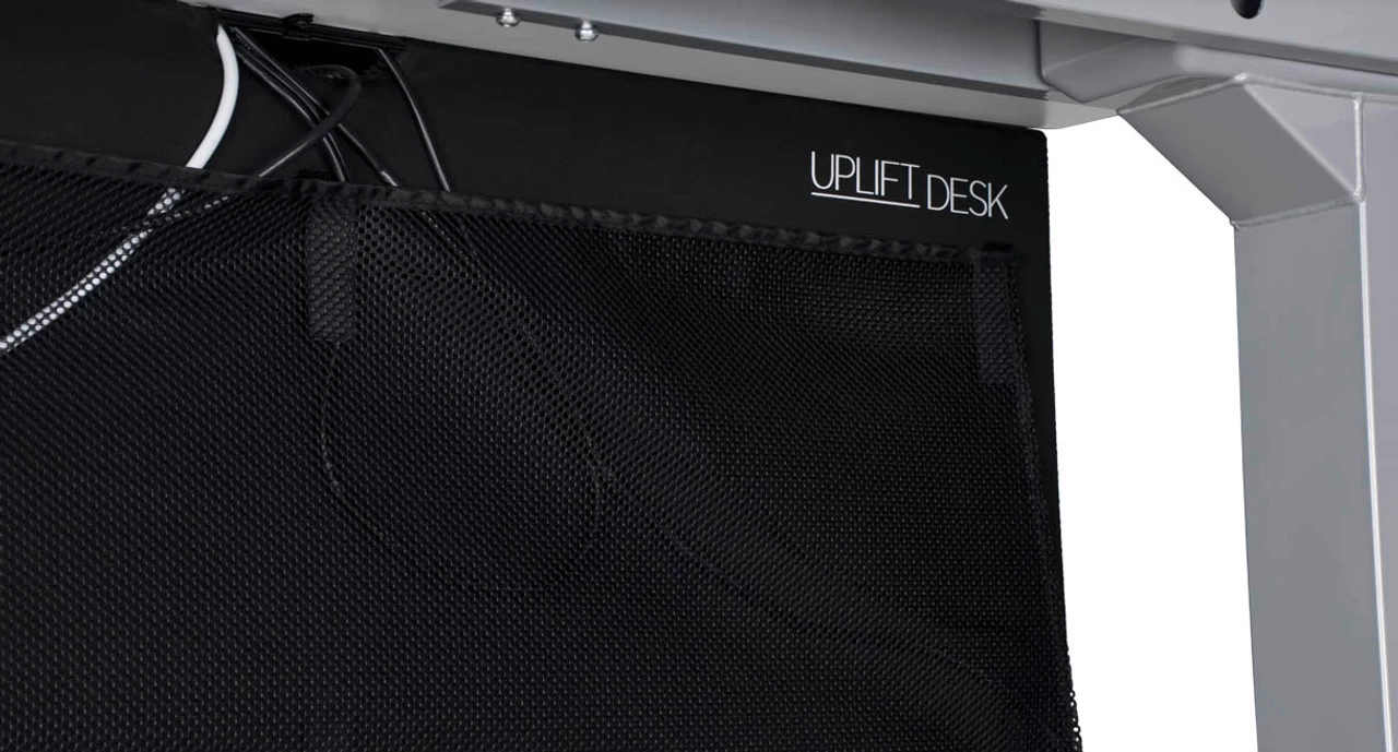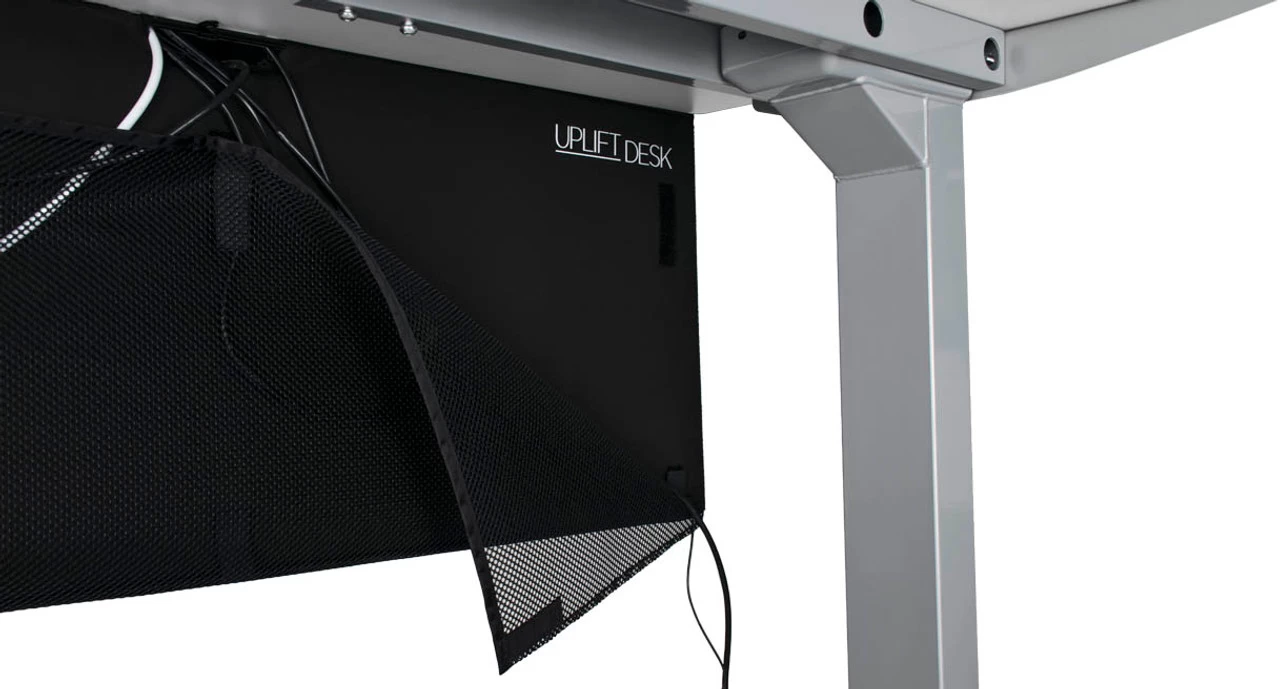 Open area workspaces are a feature in many modern offices, but what do you do with all of your under-desk action? Keep cords, cables, and attachments out of sight and your desk setup looking tidy with the UPLIFT Desk Modesty Panel with Wire Management system.