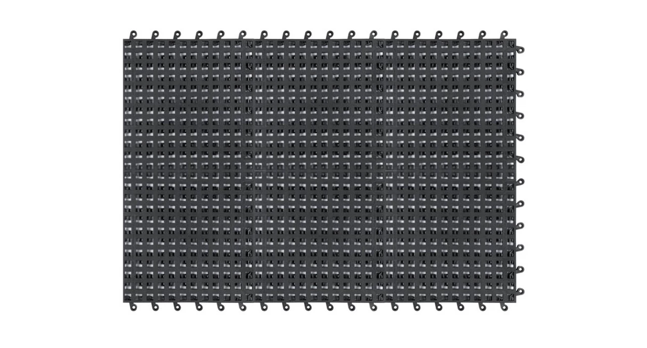 - Each tile has six interlocking connectors to prevent separation; countersunk holes for semi-permanent installations